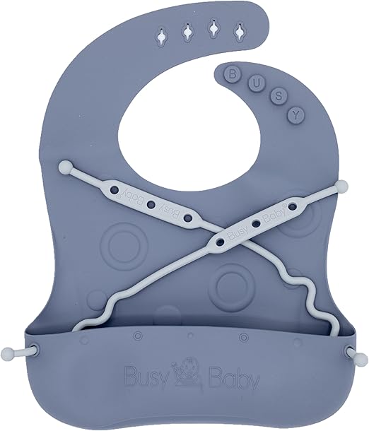 BUSY BABY Bungee Bib – Adjustable Silicone Bib with Pocket & Tether Syst...