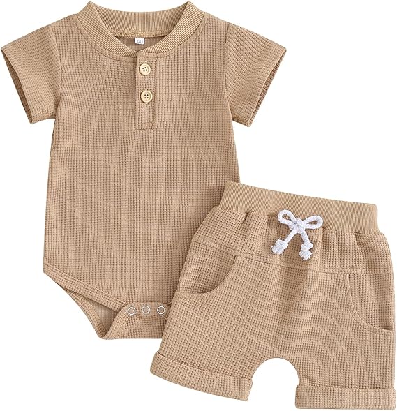 Kuriozud Newborn Baby Boy Summer Clothes Button Short Sleeve Romper Body...