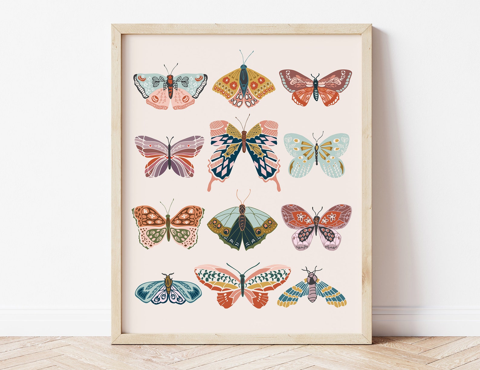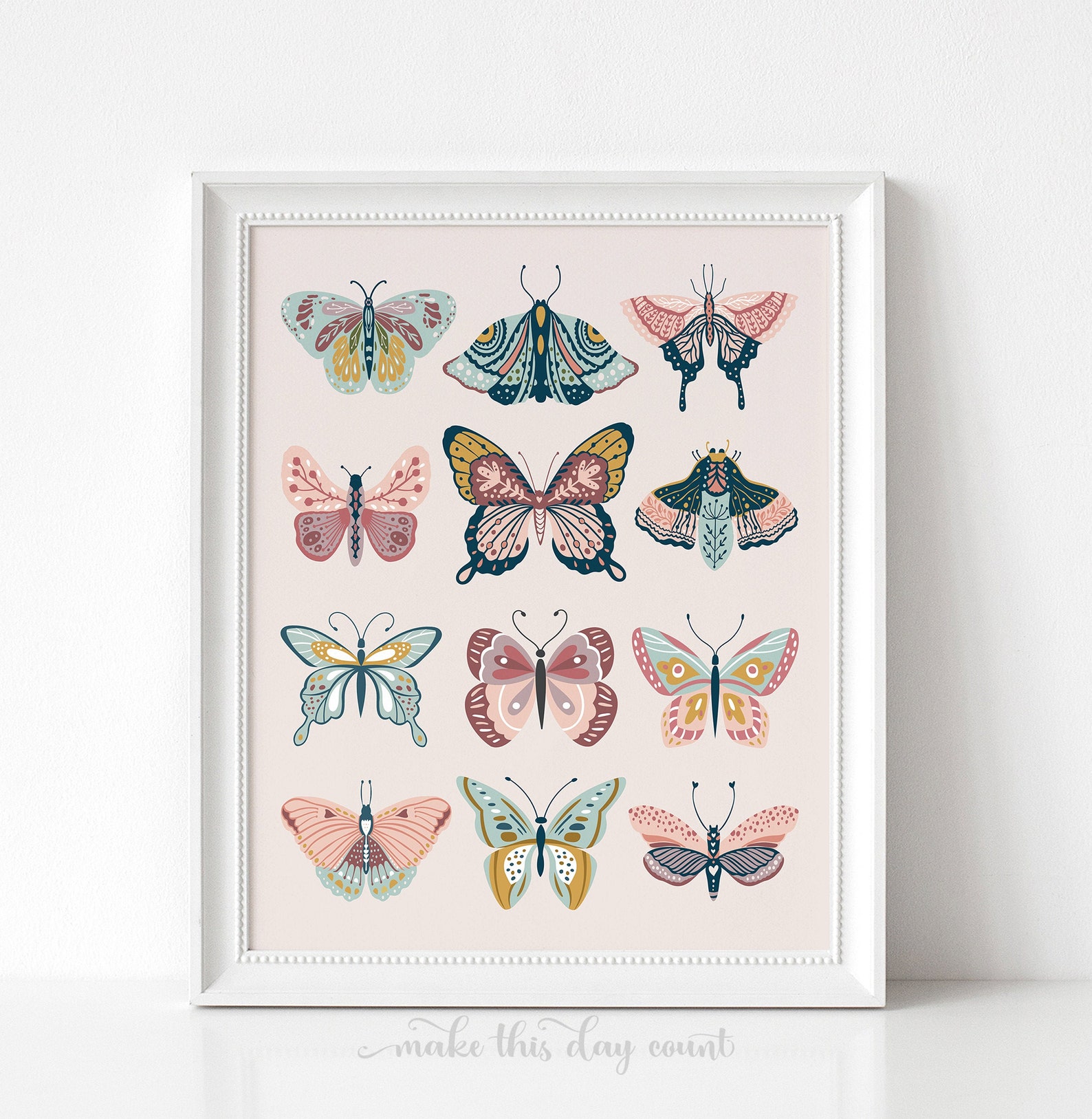 boho butterflies, printable art, digital print, girl's room decor, moder...