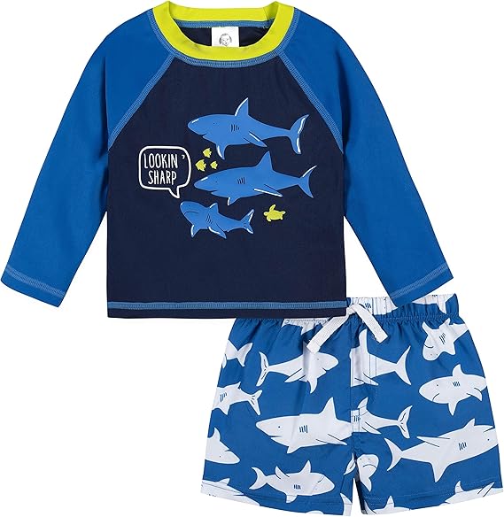 Gerber Baby Boys' Toddler Long Sleeved Rashguard Swim Bathing Suit Set
