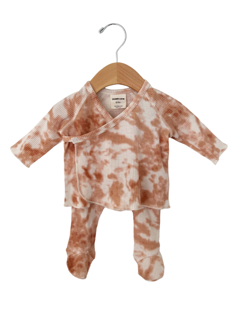 Organic Waffle Kimono & Pant Set, Spice Tie Dye