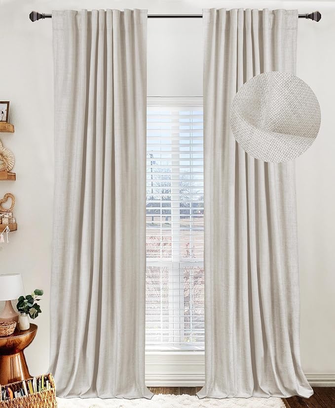 100% Blackout Shield Linen Blackout Curtains for Bedroom 84 Inches Long,...