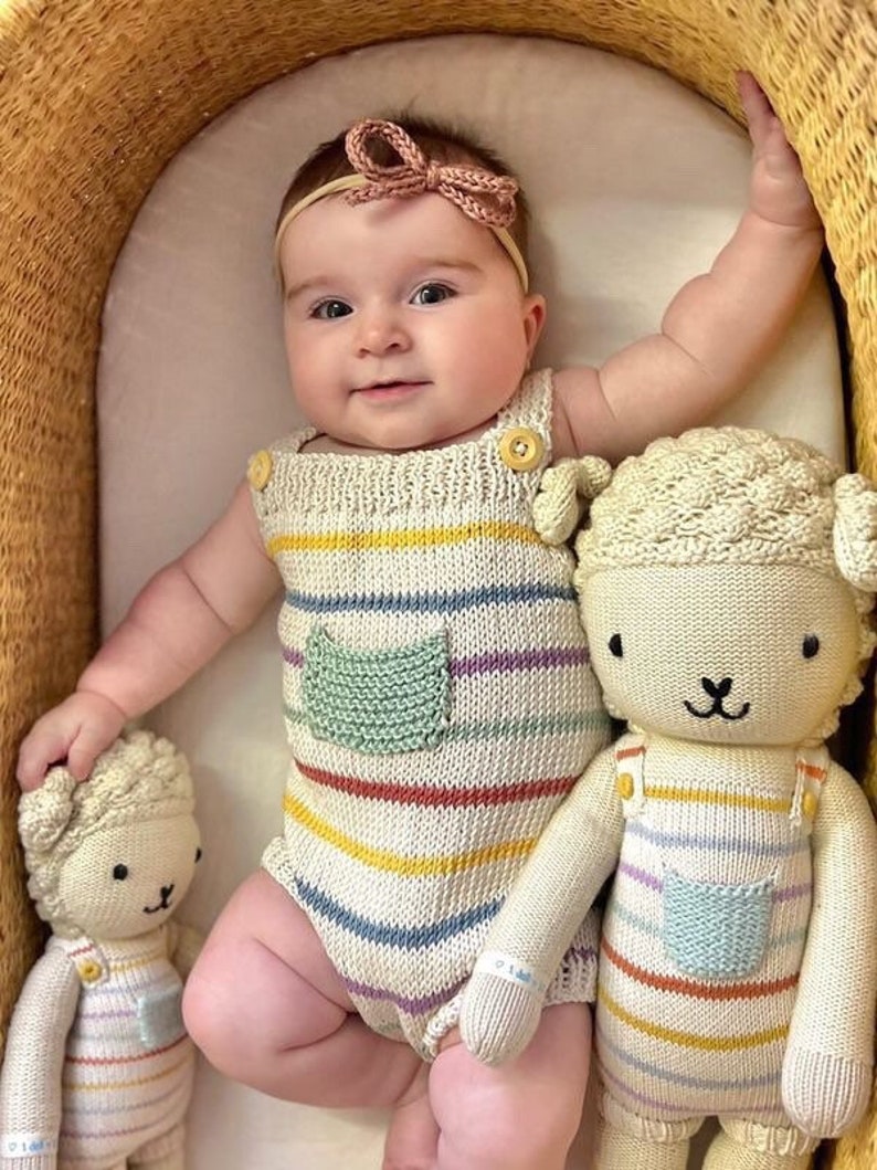 Soft Cotton Handknit Rainbow Romper With Front Pocket Option Custom Play...