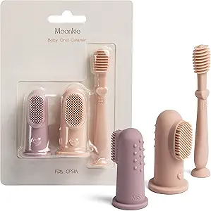 Moonkie Baby Finger Toothbrush Tongue Oral Cleaner Kit for 3 Months +, 3...