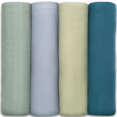 Comfy Cubs Muslin Swaddle Blankets, 4 Pack - Sage, Pacific Blue, Fern, N...