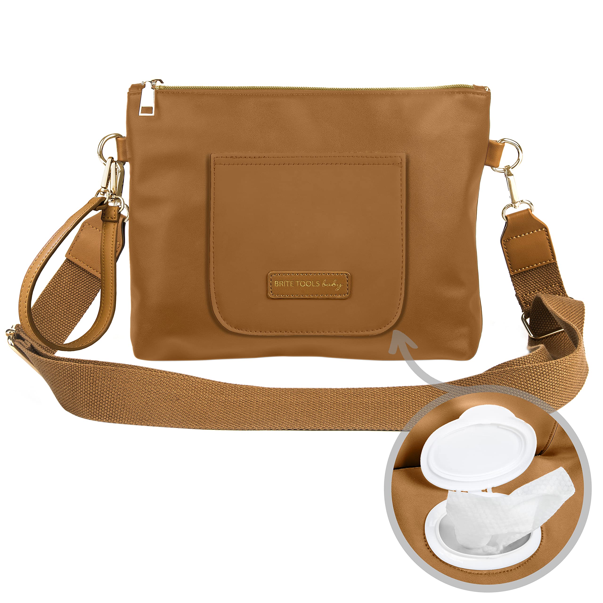 Brite Tools Leather Crossbody Diaper Clutch Bag Refillable Wipes Holder ...