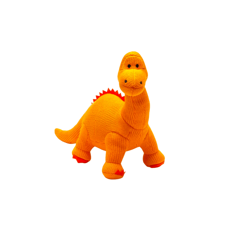 Knit Orange Diplodocus Dinosaur Baby Rattle
