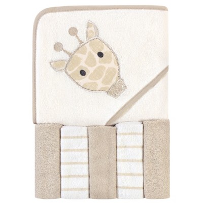 Hudson Baby Infant Unisex Hooded Towel and Five Washcloths, Modern Giraf...