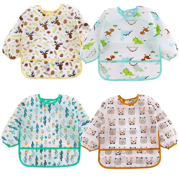 4 Pcs Long Sleeved Baby Bibs Waterproof Sleeved Bib 0-3 Years