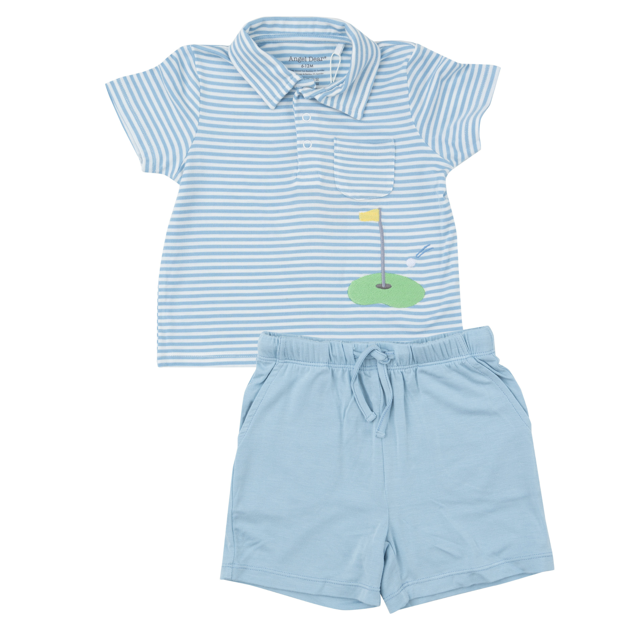 Golf Polo Shirt & Short Set, Dream Blue Stripe