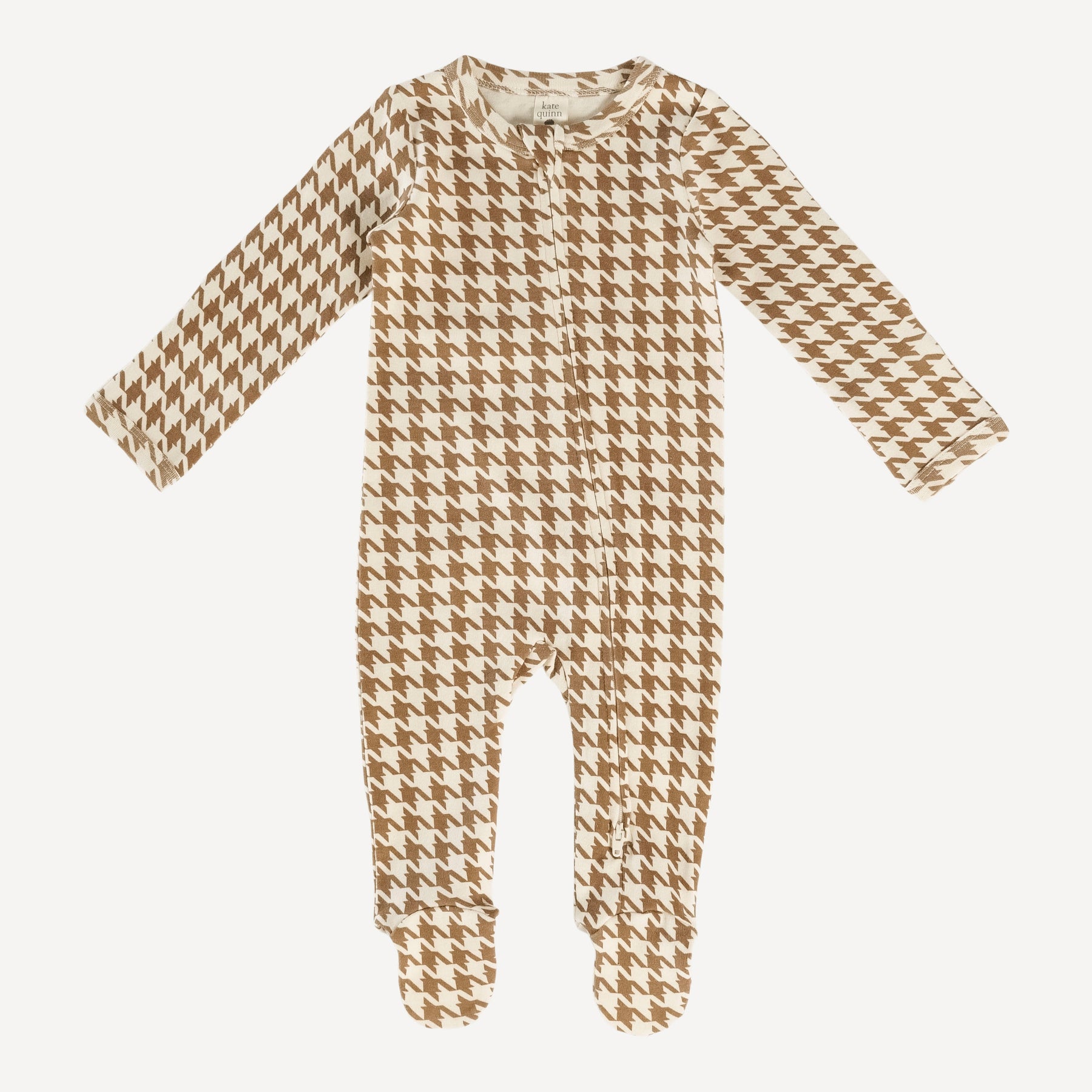 Kate Quinn - long sleeve zipper footie | chocolate houndstooth | organic...