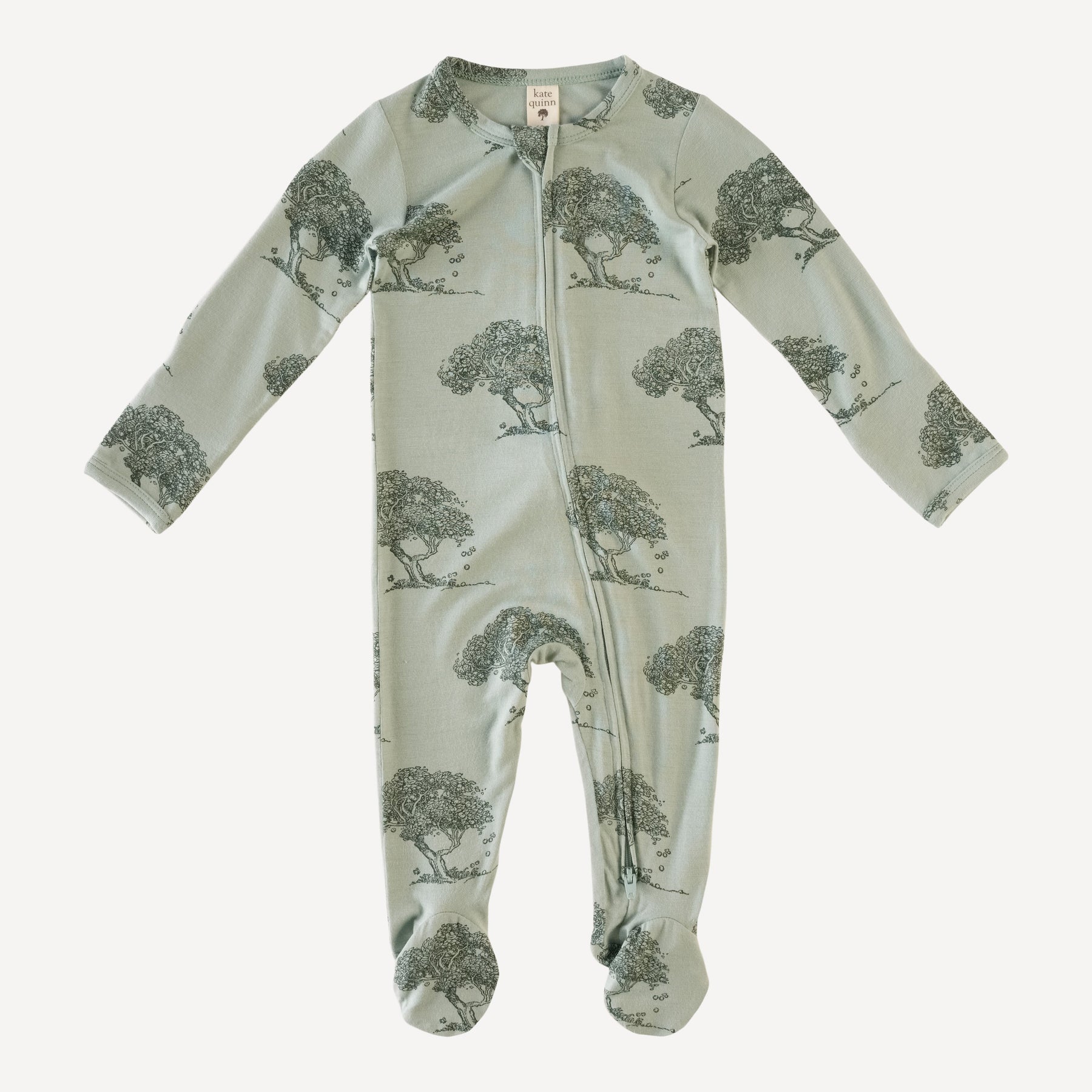 Kate Quinn - long sleeve zipper footie | green apple tree | bamboo