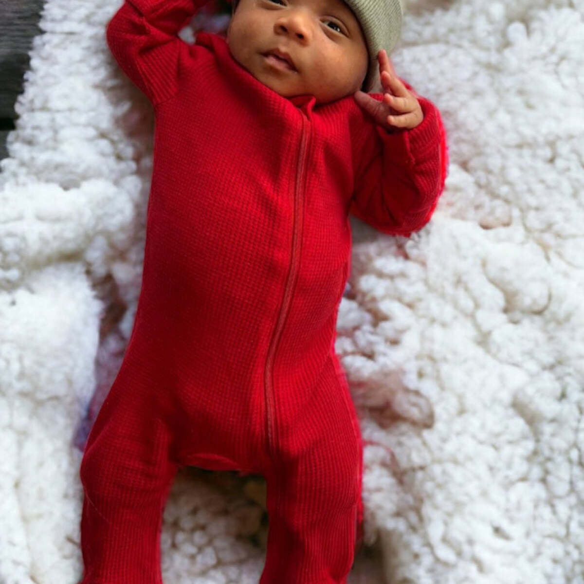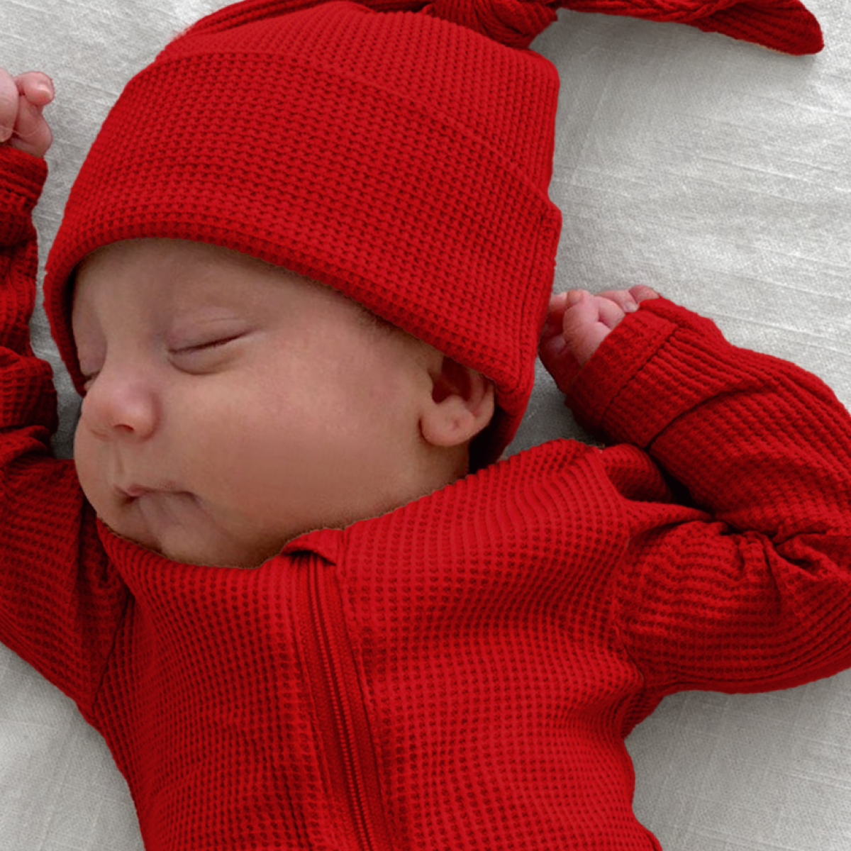 Organic Waffle Knot Beanie, Red I Newborn Baby's First Christmas Hat