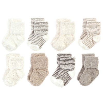 Hudson Baby Cozy Chenille Newborn and Terry Socks, Beige Stripe 8 Pack