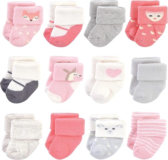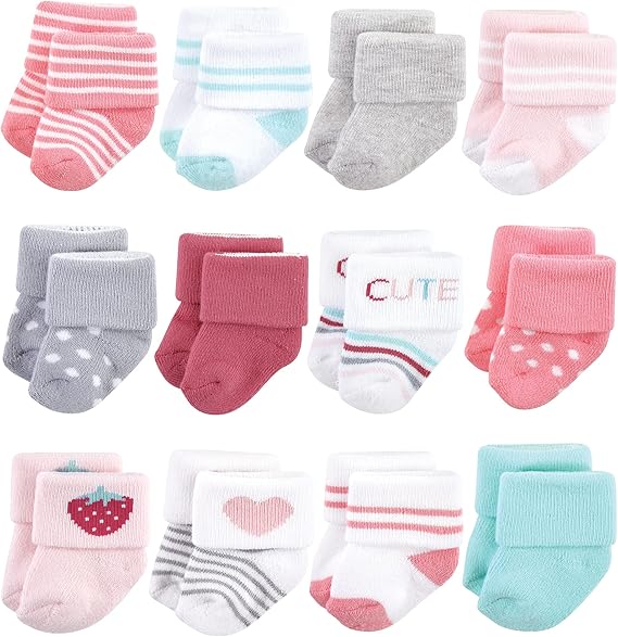 Hudson Baby Baby Girls' Cotton Rich Newborn and Terry Socks