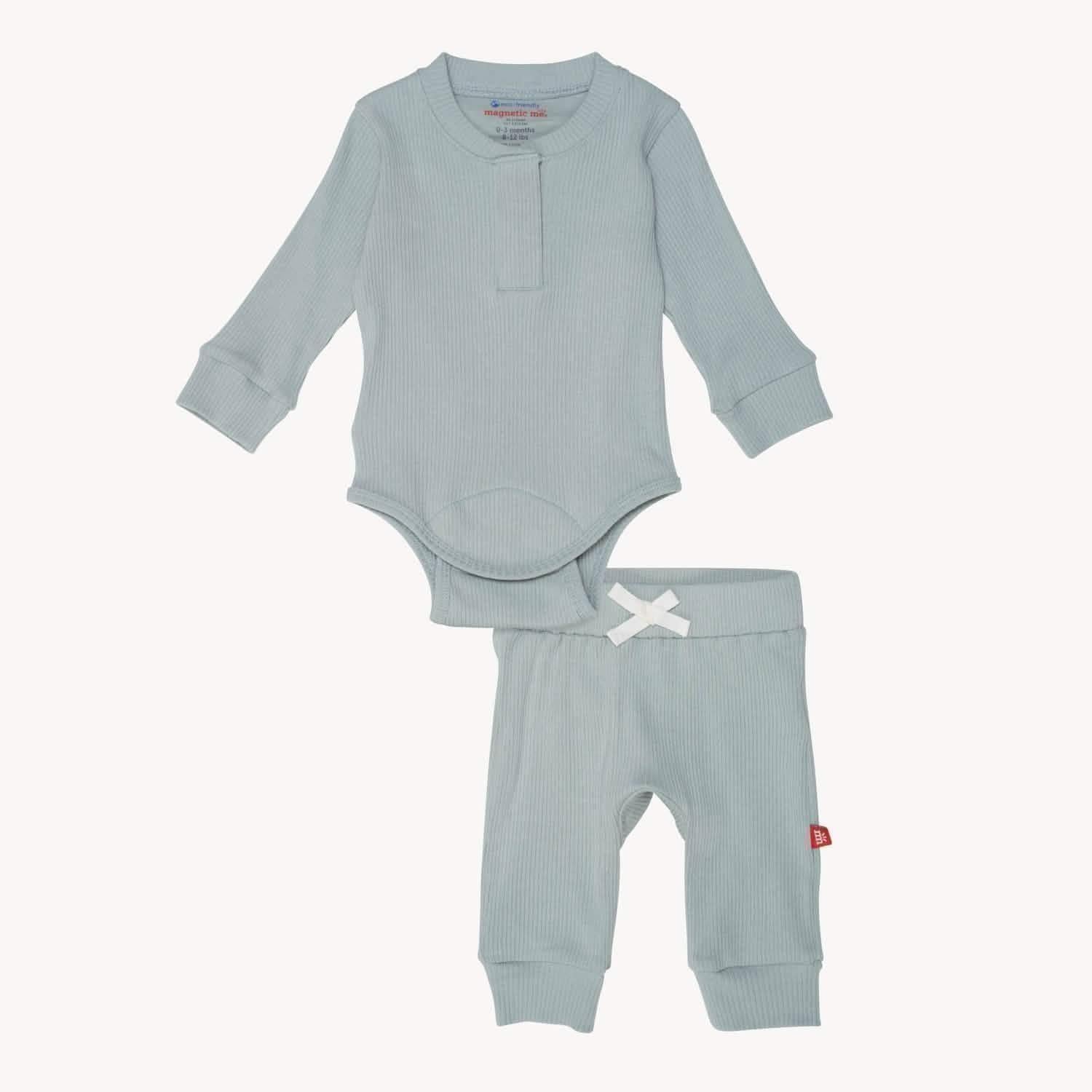 Magnetic Me Mist Ribbed Cotton Magnetic Long Sleeve Bodysuit + Pant Set