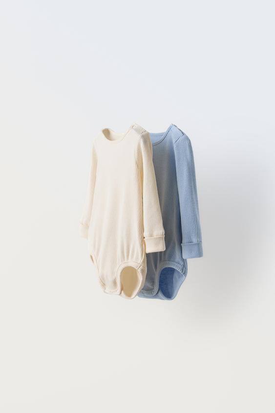 Zara Two-Pack of Waffle Weave Bodysuits Blue (6-9 Months)