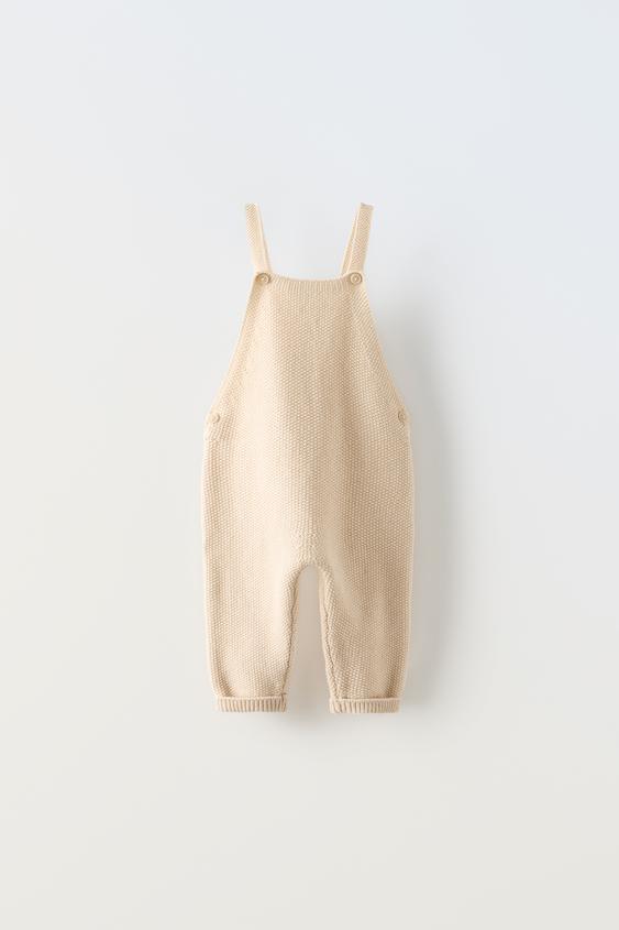 Zara Knit Overalls Light Beige (6-9 Months)
