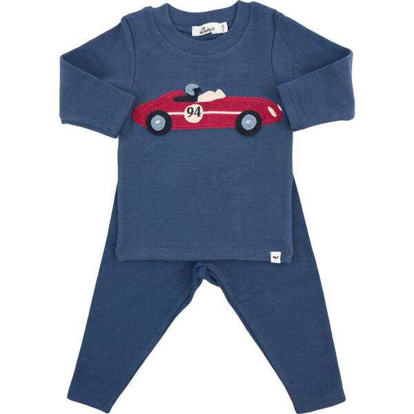Racecar Terry Applique Two Piece Set, Denim - oh baby! Mixed Apparel Set...