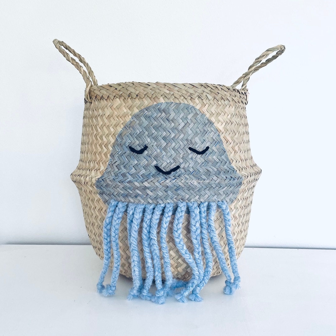 Large Blue Jellyfish Seagrass Belly Basket for Kids Toy Storage by Belly...